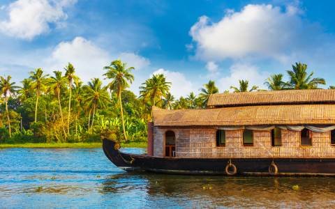 After breakfast, proceed to Alleppey to board a traditional Kerala houseboat (Kettuvallam). Cruise through tranquil backwaters lined with coconut palms and village life scenes. Enjoy freshly prepared Kerala cuisine onboard and relax on the deck as the boat glides through scenic waterways. Dinner and overnight stay on the houseboat.
